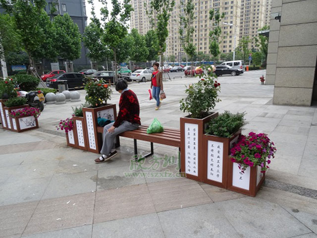 塑木花箱作為一種鮮花和植物收集的容器,適宜設置在風景優美的地方欣賞,也可以和亭、廊、水榭等結合,組成和諧優美的園林景觀。在日常生活中,最常見的塑木花箱恐怕還是在城市馬路兩邊的綠化帶中。云南政府為了滿足道路景觀要需求,現在需要采用更結實堅用,美觀大方的材料制作的塑木花箱,景觀塑木花箱現已成為城市道路必不可少的家具與裝飾。而欣方圳公司的塑木花箱,因其樣式多彩多樣,使用壽命長又美觀,更因其對環境的零污染,而成為市場上花箱的流行趨勢!