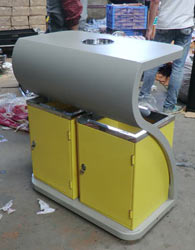 由于欣方圳垃圾桶廠家該款鋼制垃圾桶訂單的產品是鍍鋅鋼板材質,大大增加了產品的使用壽命,根據客戶的要求,該產品采用靜電噴涂工藝,使桶身表面的漆料牢牢吸附, 漆料方面更是選用了防水,防腐,耐高溫的材料,更是增加了該產品的耐用性。桶身投口采用內推蓋的設計,不僅僅美觀,更是防止蚊蠅的滋生。方便了垃圾的存放,由于該桶為兩個單桶組合在一起,桶身上由專業的設計人員設計公司的圖案,不僅僅突出了公司的標識,更使得產品更加美觀。