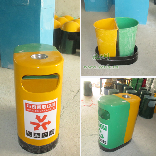 深圳寶安沙井實驗學校,是欣方圳老顧客了。按照之前訂購的玻璃鋼垃圾桶樣板生產(chǎn),發(fā)實物照給工廠的廠長確認。A21玻璃鋼環(huán)保分類垃圾桶的規(guī)格為:680*400*850mm.這款垃圾桶來頭可不小哦,它是獲得了專利外觀設計的玻璃鋼垃圾桶。每個產(chǎn)品是經(jīng)過的嚴格生產(chǎn)程序制造出來,貼上產(chǎn)品合格證,符合企業(yè)高品質標準。玻璃鋼垃圾桶一邊嫩綠,一邊中絡黃,底座黑色,外加一個煙灰缸巧妙的搭配,簡潔、美觀。桶蓋/桶身采用FRP玻璃鋼復合材料制造,具有防腐、防盜、防生銹、易清潔等特點,表面涂層采用高分子耐老化膠衣涂層,色澤明快、持久。