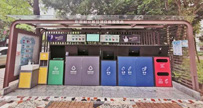 深圳社區(qū)定點(diǎn)不銹鋼分類垃圾投放站標(biāo)準(zhǔn)版單雙桶尺寸規(guī)格分別是,有害垃圾和廚余垃圾金屬外罩單桶設(shè)置,尺寸為740*950*1730mm;可回收物和其他垃圾收集容器外罩分類桶...