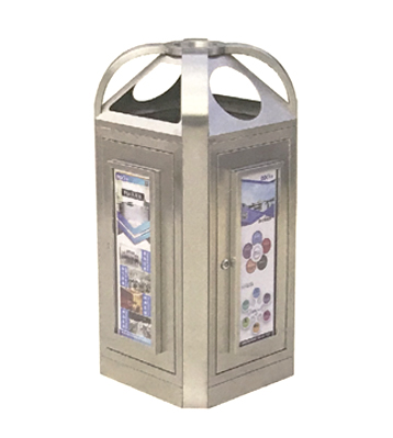 深圳新標準城中村街道社區不銹鋼五分類垃圾桶由有害垃圾、玻璃、金塑紙(為金屬、塑料、紙張的簡稱)、廚余垃圾、其他垃圾這5分類不銹鋼垃圾桶組合而成。其中金塑紙、其他垃圾日常產生量較大,所以分類收集容器也