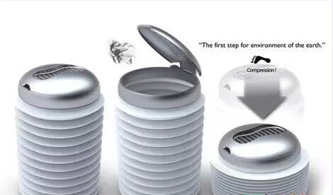 一個(gè)節(jié)省空間資源的設(shè)計(jì)。當(dāng)垃圾滿了之后,用腳踩踩,還能繼續(xù)裝。