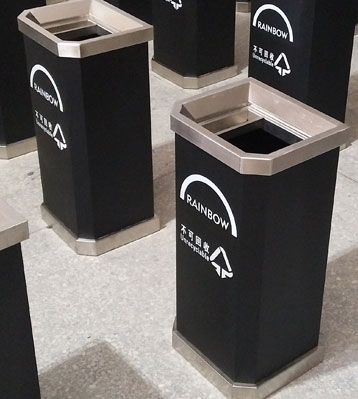 • 產品材質:鐵板噴塑垃圾桶采用優質冷軋鋼經除油-除銹-表調-磷化處理后,表面采用汽車靜電粉末噴漆工藝,噴塑粉主要有丙烯酸粉末、聚酯粉末等。雙層防銹,漆面色澤耐久;