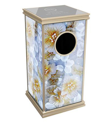 • 使用范圍:欣方圳鈦金垃圾桶是KTV、星級酒店、賓館、娛樂城、機(jī)場、銀行、商場、商務(wù)寫字樓等高檔室內(nèi)場所首選。