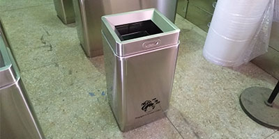 • 使用范圍:不銹鋼室內單桶垃圾桶表面光滑、亮麗,是電梯口、寫字樓、學校、物業、賓館、酒店、機場、汽車站等擺放的首選。