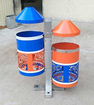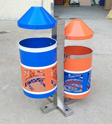民族風情戶外鋼制分類垃圾桶-戶外垃圾桶定制廠家