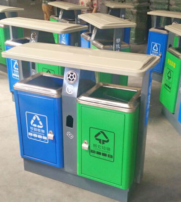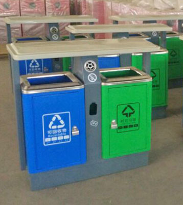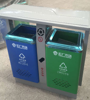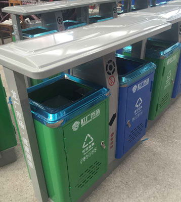 欣方圳戶外鋼制環保分類垃圾桶工廠批量生產圖