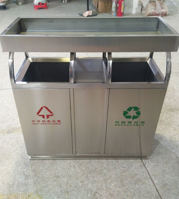 不銹鋼戶外分類垃圾桶即可作為戶外垃圾收集使用,因其材質優越性,高檔美觀防銹耐用,是戶外垃圾收集容器常用材質。帶花盆位可放土種植景觀綠植,美化周邊環境,雅俗共賞完美的結合。