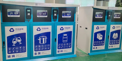 • 產品特點:社區智能分類垃圾桶回收紙張、塑料、金屬、玻璃、紡物、有害、廚余、其他等八種常見可回收再生資源。內置智能自動稱重模塊,后臺時刻檢測回收箱垃圾重量,滿溢自動停用功能并自動發送預警信息及時清運;帶感光燈控開關傍晚會自動開啟照亮功能;用戶身份識別系統,可追塑垃圾投放來源;帶管理系統積分兌換禮品。