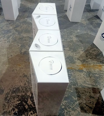 欣方圳戶外四分類搖擺蓋不銹鋼果皮箱批量生產(chǎn)圖
