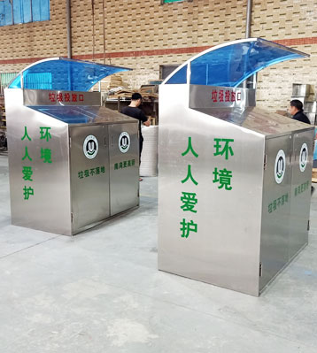 欣方圳大容量帶雨棚不銹鋼分類(lèi)垃圾桶工廠(chǎng)批量生產(chǎn)圖