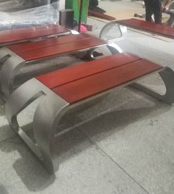 戶外不銹鋼公園休閑椅定制椅面原材料采用真空泵排除空氣、填充防腐液、加壓滲透、抽真空排出多余防腐液達到先進的防腐防蟲工藝。