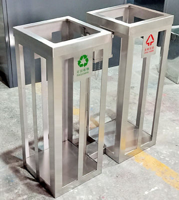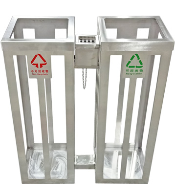不銹鋼可視垃圾桶方形2分類設計,足1.45厚304不銹鋼框架四周部分鏤空套垃圾袋,存放什么垃圾一目了然,及時了解排除安全隱患。有帶煙灰柱和不帶兩種款式。