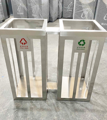 • 產品材質:不銹鋼可視分類垃圾桶可采用201#,202#,304#優質不銹鋼材料模壓成型,堅固耐用,不易破損;耐火安全,抗高低溫,適合各種惡劣氣候條件;金屬亮澤 ,高雅美觀,廣泛適用于各種場所;內外表面光潔,減少垃圾殘留,易于清潔;配置鍍鋅板內桶,便于垃圾清倒;
