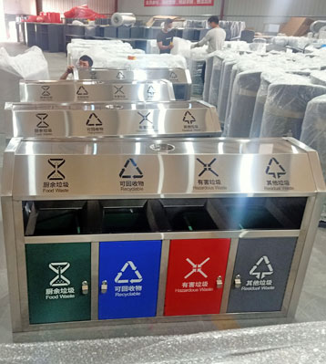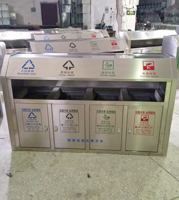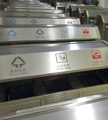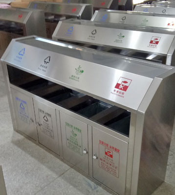 欣方圳斜切面不銹鋼四分類垃圾桶絲印新標(biāo)準(zhǔn)分類圖標(biāo)