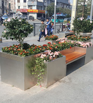 • 產品名稱:戶外不銹鋼大花箱景觀花槽坐凳組合