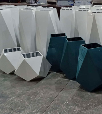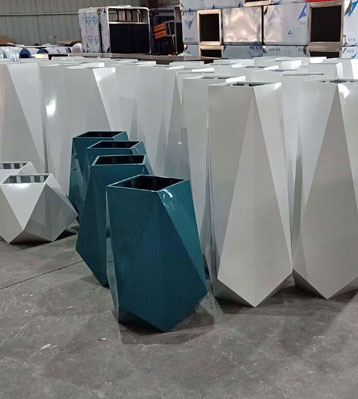 • 產品材質:不銹鋼切面花盆可采用5mm加厚201#/202#/304#不銹鋼材料模壓或焊接成型,金屬亮澤,內外表面光潔,易于清潔,表面可做電鍍壓紋、水鍍、蝕刻、納米鎳、無氰堿性光亮鍍銅工藝效果,無指紋處理高檔大氣;